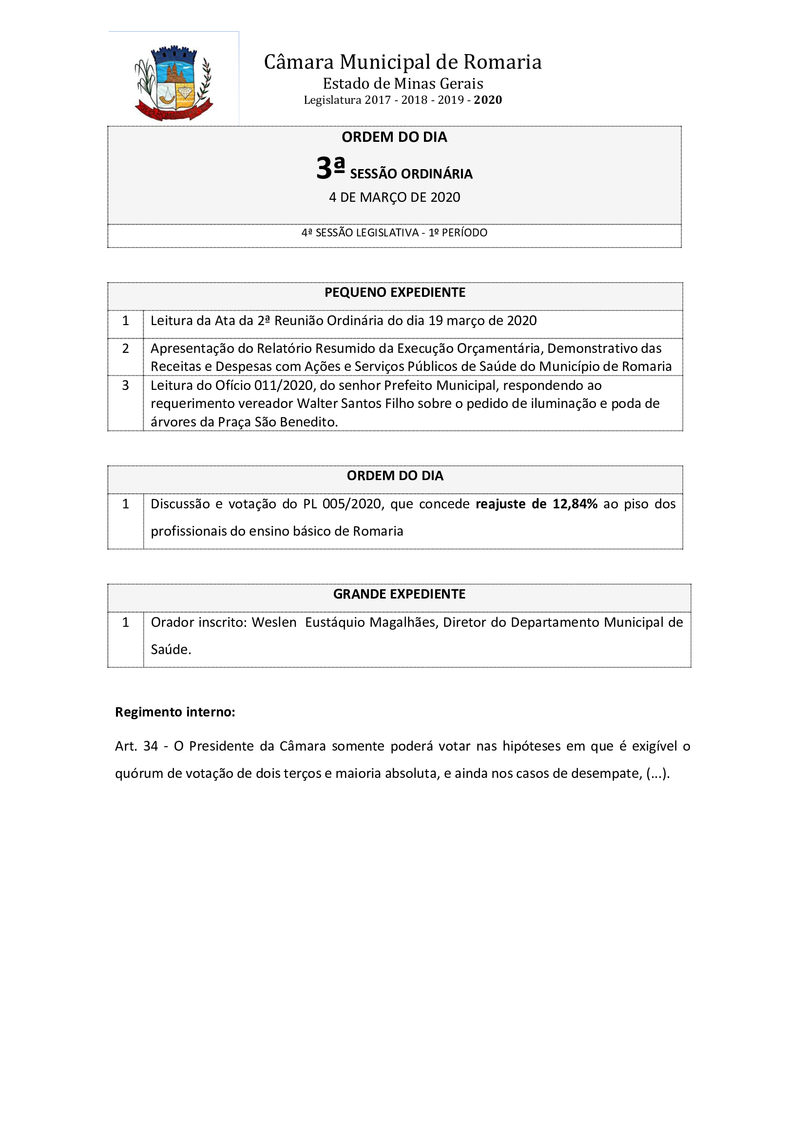 3.ª REUNIÃO ORDINÁRIA DO DIA 04/03/2020