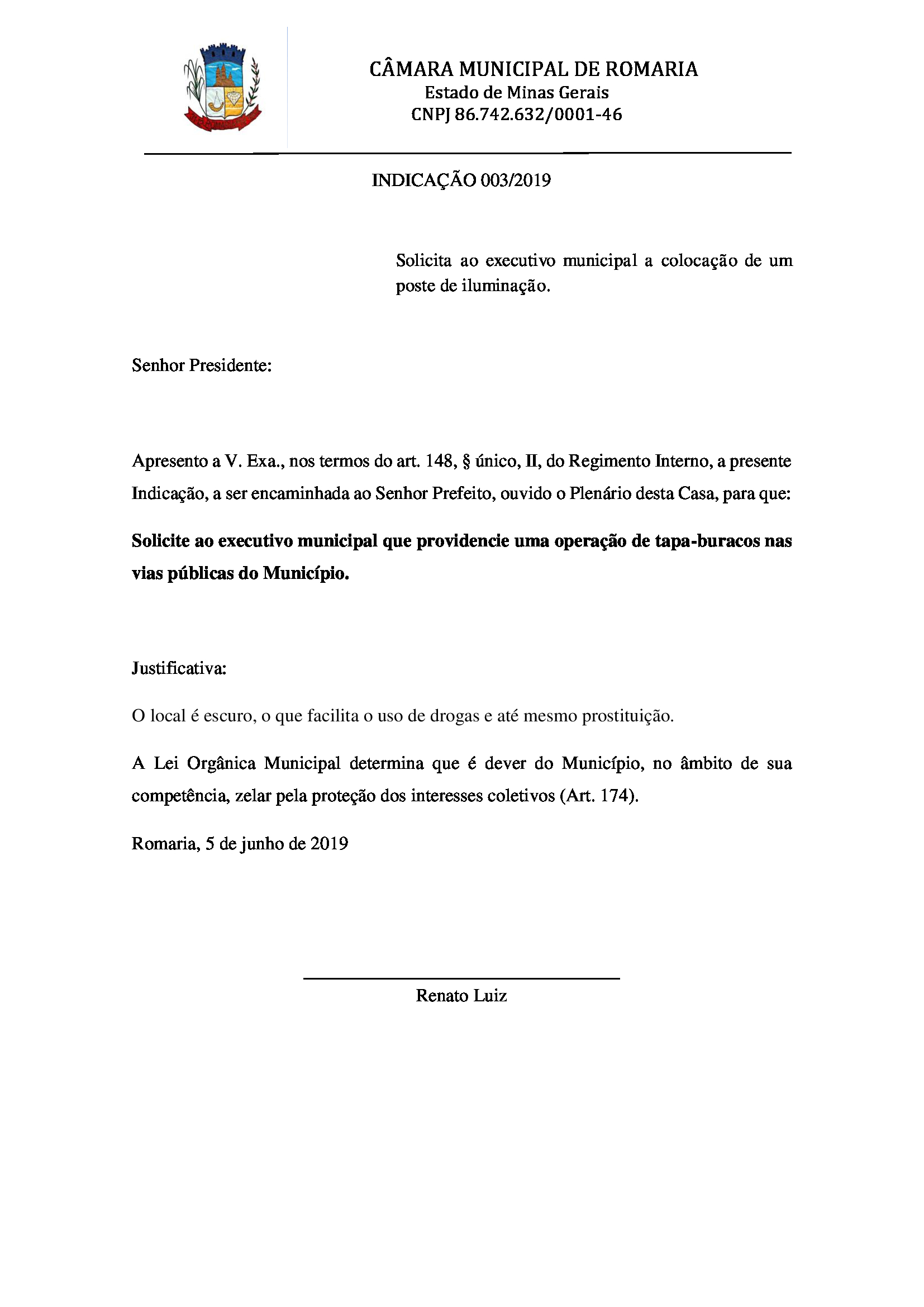 Indicação 003/2019